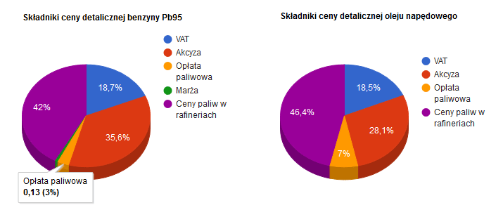 Obecnie opłata paliwowa to jeden z najmniejszych składników ceny paliw. Według wyliczeń portalu e-petrol.pl stanowi ona zaledwie 3% ceny benzyny i 7% ceny oleju napędowego. Po ewentualnej podwyżce zbliży się jednak wyraźnie do wysokości podatku VAT. Największy wpływ na cenę paliwa wciąż ma cena w rafinerii oraz akcyza.